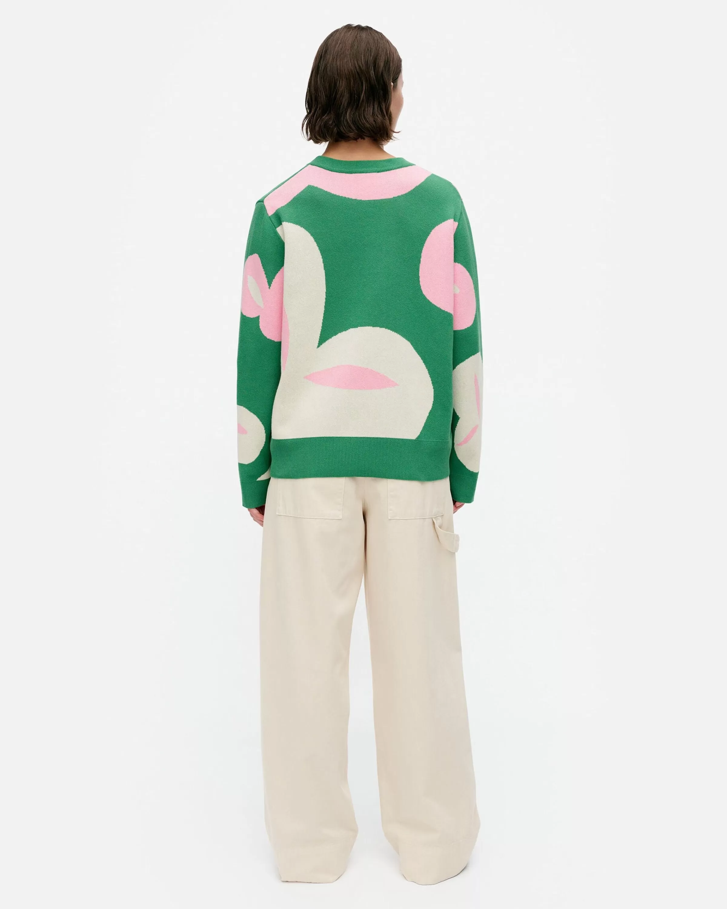 Poiminto-Kuosinen Viuhko-Neulepusero On Valmistettu Luomupuuvillasta Ja Siinä On Rento Istuvuus Sekä Suora Leikkaus. Neulepuserossa On Syvä V-Pääntie Resorireunuksella Ja Helmassa Sekä Hihansuissa On Leveät Resorit.